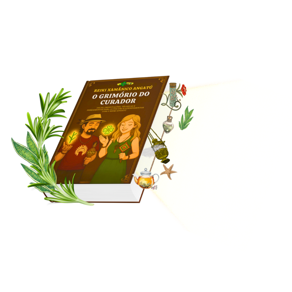 O Grimório do Curador é um projeto canalizado e cuidadosamente estruturado por nós, Mila & Cleber, para compartilhar com você a essência viva da nossa prática com o Reiki Xamânico Angatú.